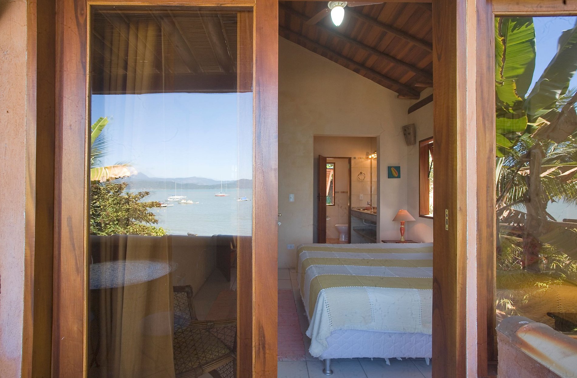 A casa é muito bonita e de bom gosto. Os cômodos são grandes, arejados e limpos. É possível apreciar a vista para o mar de muitos cômodos e da piscina. As suítes do andar de cima são bem espaçosas, com camas grandes, duas pias, espaço para mala, pendurar roupas etc. As suítes de baixo são menores, mas suficientemente boas para a estadia. Da sacada de cima conseguimos apreciar o mar e os macaquinhos da bananeira. A praia é linda, mas por ter muitos barcos, a prefeitura não recomenda banho. Não nadamos, mas aproveitamos muito o pier, caminhadas, os 2 restaurantes ao lado, por e nascer de sol. Outras pessoas banharam-se. A piscina é quentinha, gostosa. O lugar todo é calmo, 5-7min de carro para o centrinho histórico e pareceu seguro. Foi muito bom.