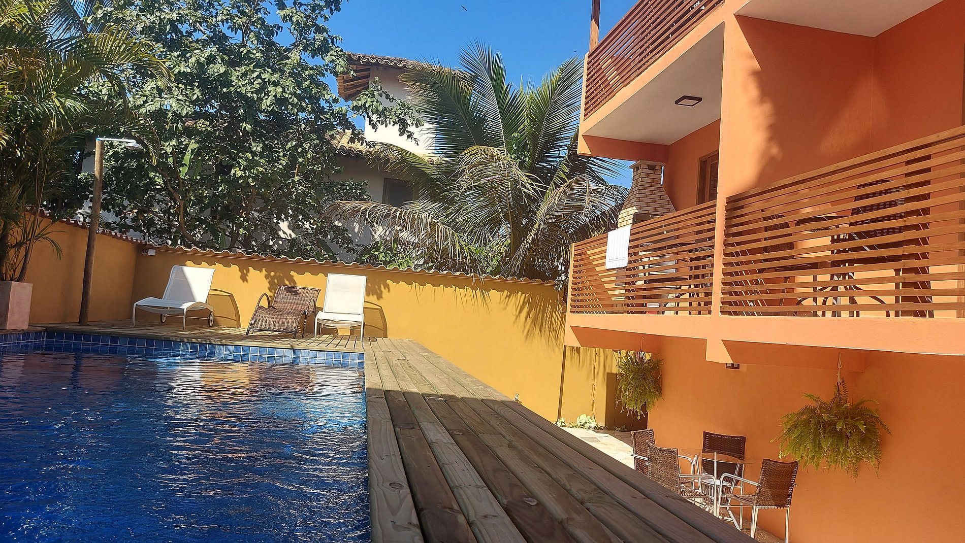 Tudo limpo e organizado, com uma piscina maravilhosa.